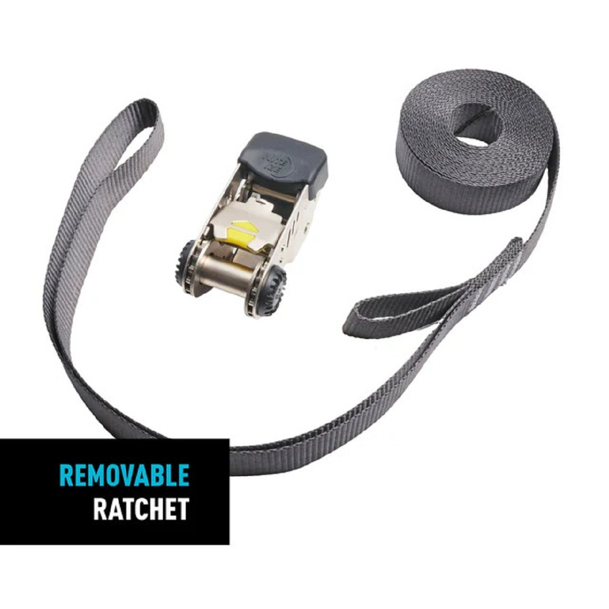 Engineered with the first-ever removable, adjustable ratchet, this system allows you to simply position the ratchet anywhere on the strap for easy device access and flexibility when securing heavy loads, with a working load limit of 1,000 lbs. When it’s time to induce tension, the innovative spool design allows you to easily rotate and feed the strap end into the ratchet. The patented Tension Boost Technology™ reduces ratcheting effort by half while nearly doubling the induced strap tension, ensuring smooth operation and long-lasting performance.