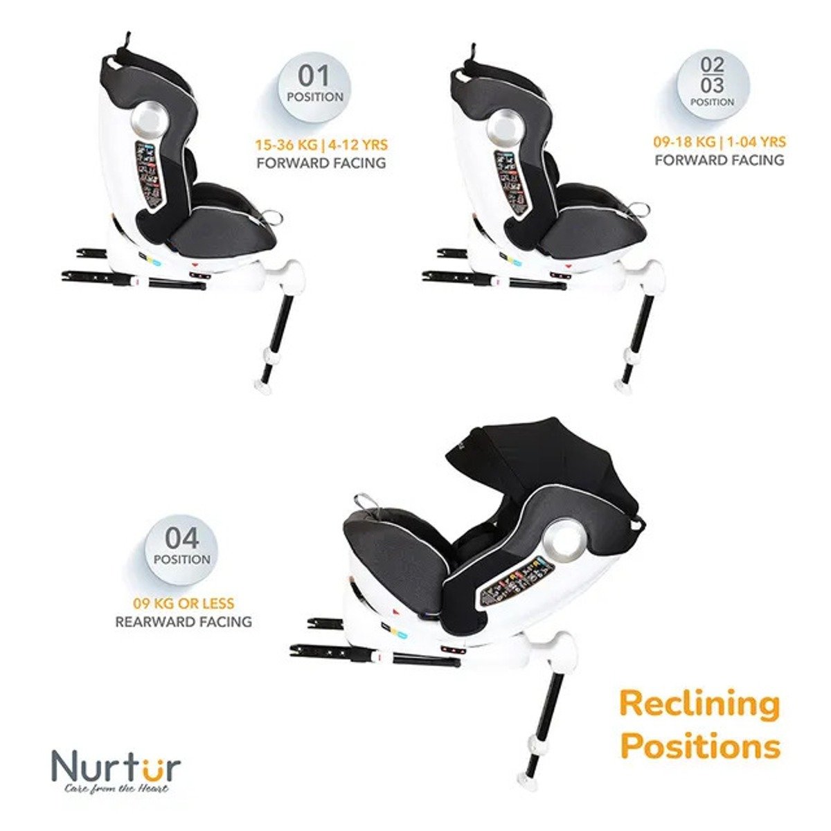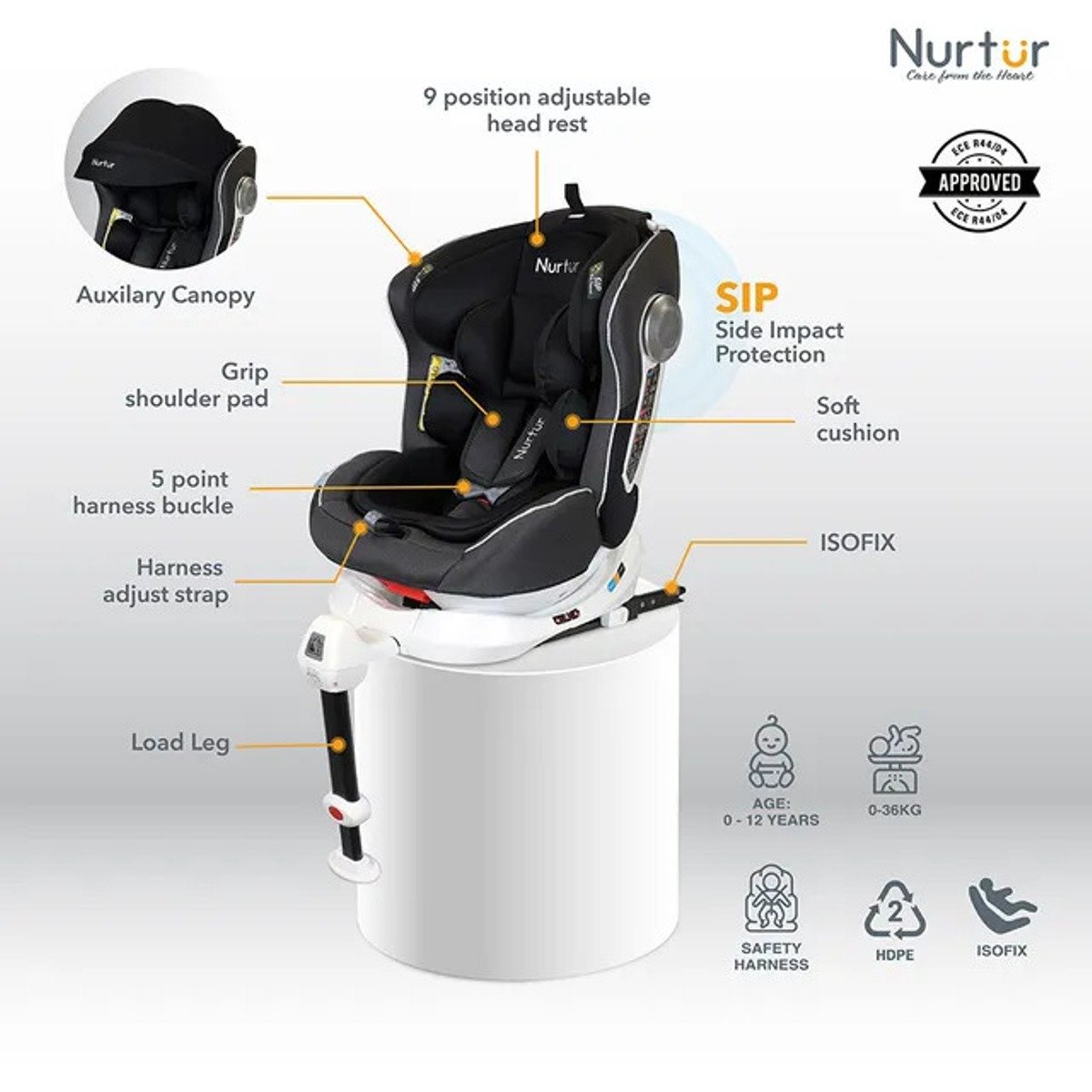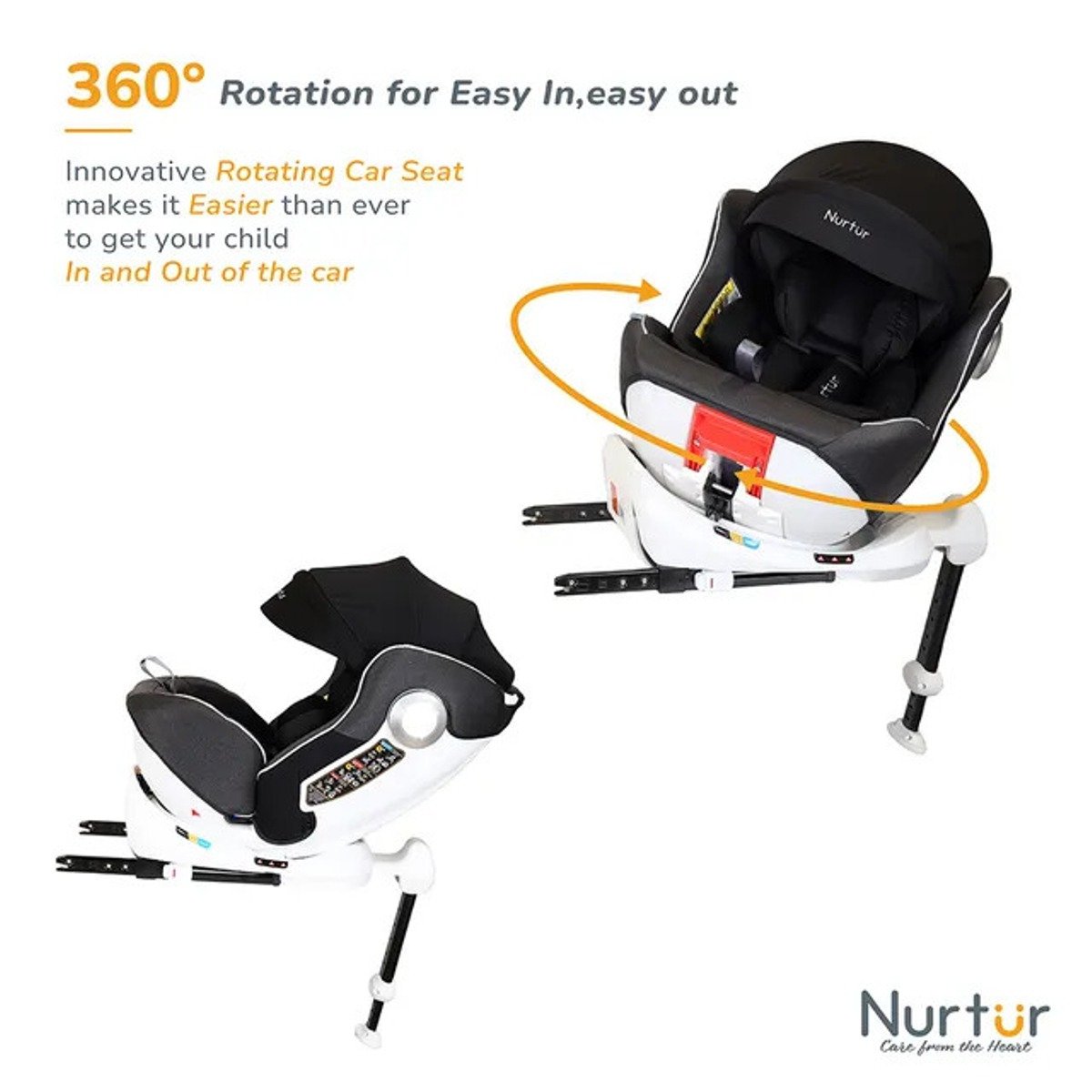 Nurtur Liberty Baby/Kids 4-in-1 Car Seat – 360? Rotation ? Leg Support – ISOFIX ? 10-level Adjustable Headrest with Canopy – 0 months to 12 years (Group 0+/1/2/3), Upto 36kg – Black