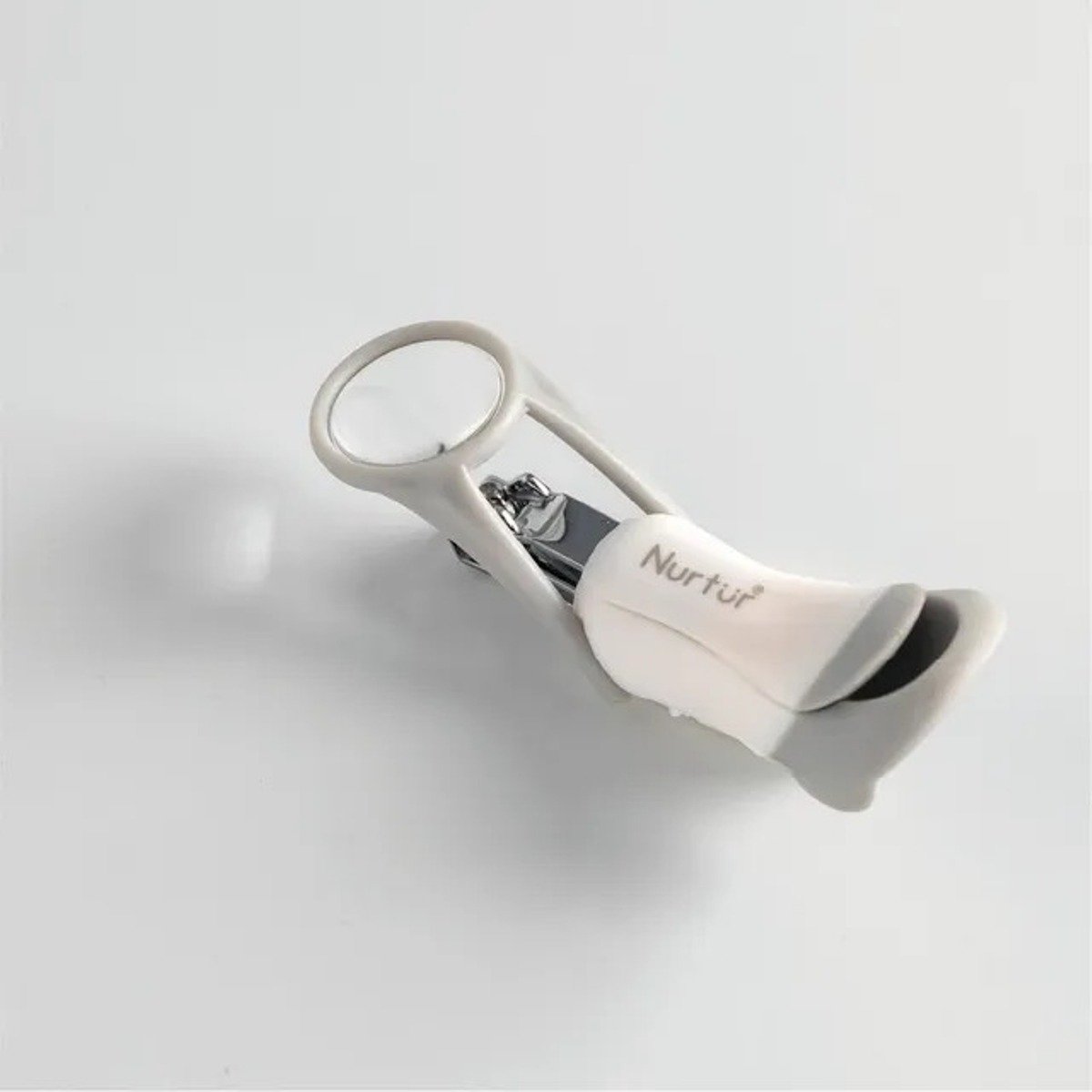 Nail clipper with built-in magnifier offers enhanced visibility for precise and safe trimming of tiny nails.