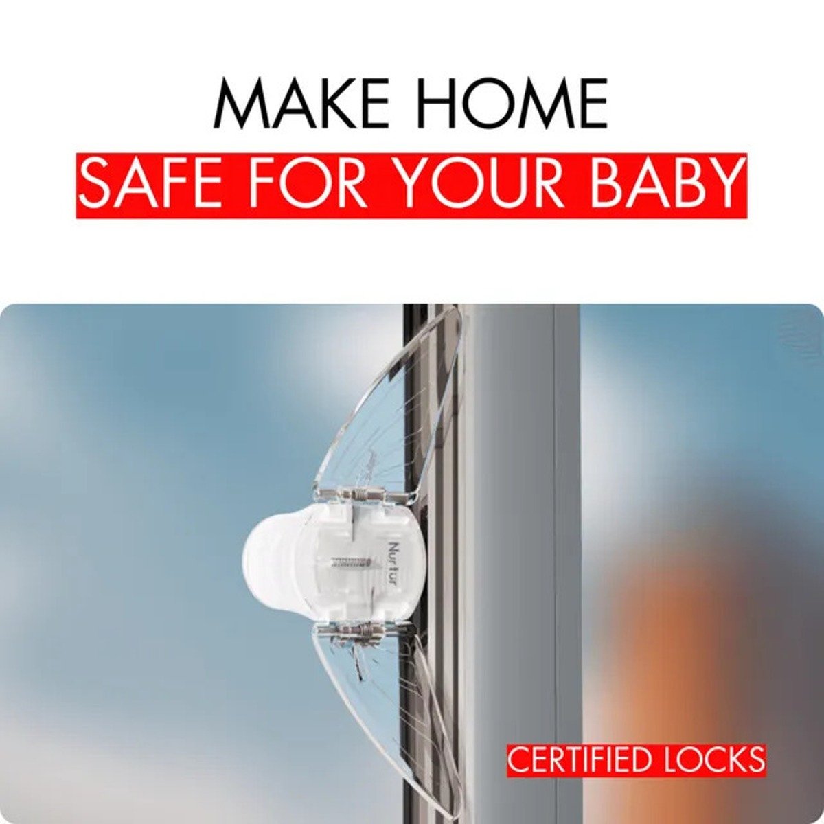 Nurtur Child Safety Window Lock – Sliding & Casement (Transparent)   Ensure window safety for your little ones with the Nurtur Child Safety Window Lock. This single-pack lock is designed to securely limit how far a window can open, preventing falls and keeping curious children safely inside. Crafted from durable and transparent PC (Polycarbonate), it offers discreet yet robust protection.   Features Securely limits window opening to prevent falls and unauthorized access. Made from durable and transparent PC (Polycarbonate) material. Versatile design suitable for both sliding and casement windows. Easy to install without tools, using strong adhesive or screws (optional). Transparent design is discreet and blends with window frames.