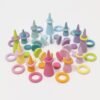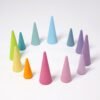 Present a forest for each season with these tree tops. These cones can also be used as roofs and spires in combination with our building blocks. Same coloring as large rainbow (Art. No 10673), perfect for sorting colours. Perfect in combination with our Geo Blocks (10100) and the Dwarfs (22000/22001).