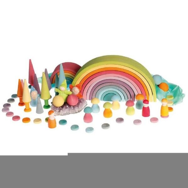 The Pastel Tunnel is really versatile: small children stack, sort and build and as the children get older they will use it as a cradle for dolls, as fence for animals, like a tunnel or bridge for vehicles, as house for dwarfs and dollhouse dolls, build amazing sculptures… this Tunnel will always be integrated in playing with a lot of fantasy.
