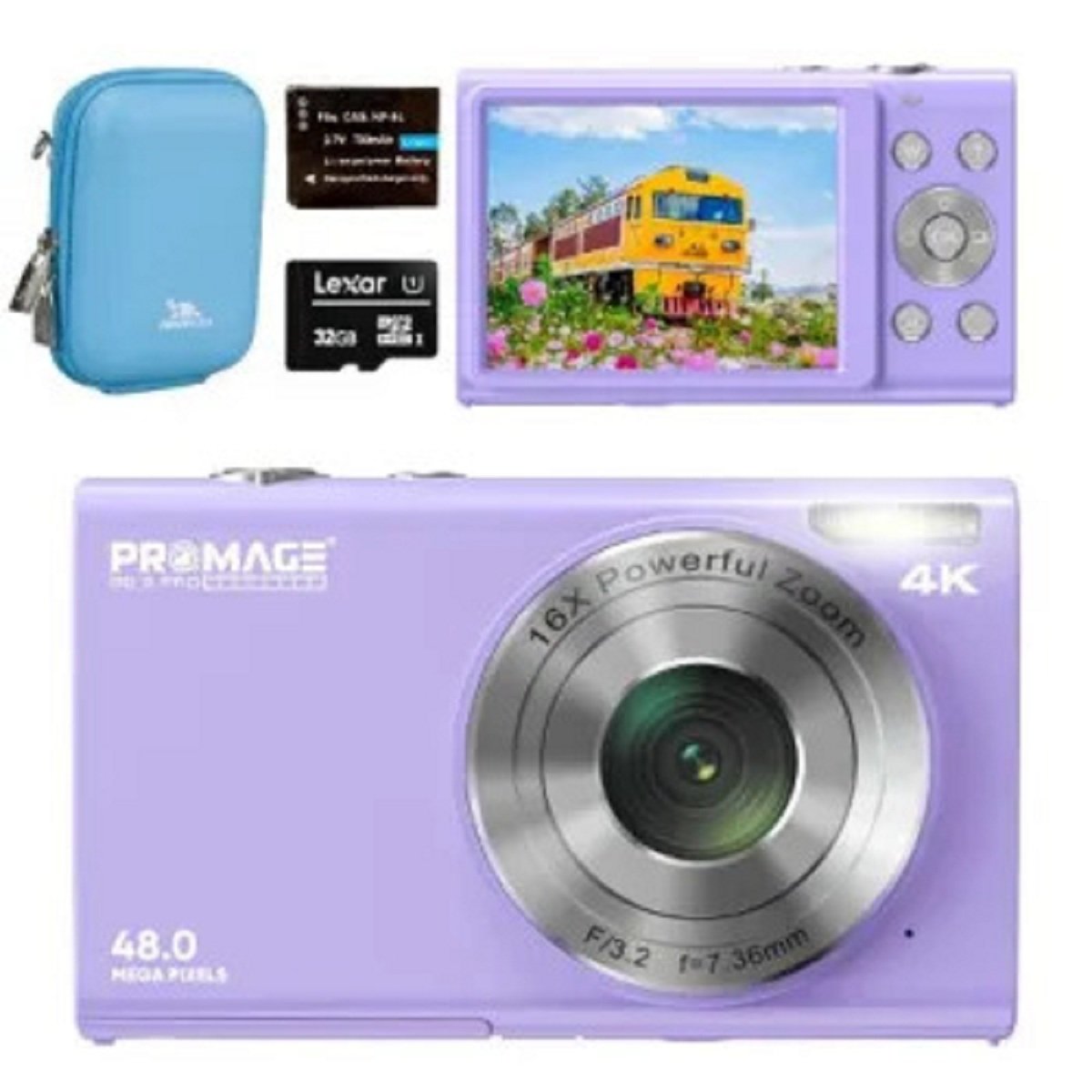 The PROMAGE 4K 16x Digital Camera (PC105) delivers high-quality 48MP photos and sharp 4K videos, perfect for capturing detailed moments. Its 8x digital zoom ensures clear shots, while scene modes optimize settings for stunning images. With advanced features like autofocus, exposure control, and white balance presets, this compact camera guarantees great performance in any lighting condition.