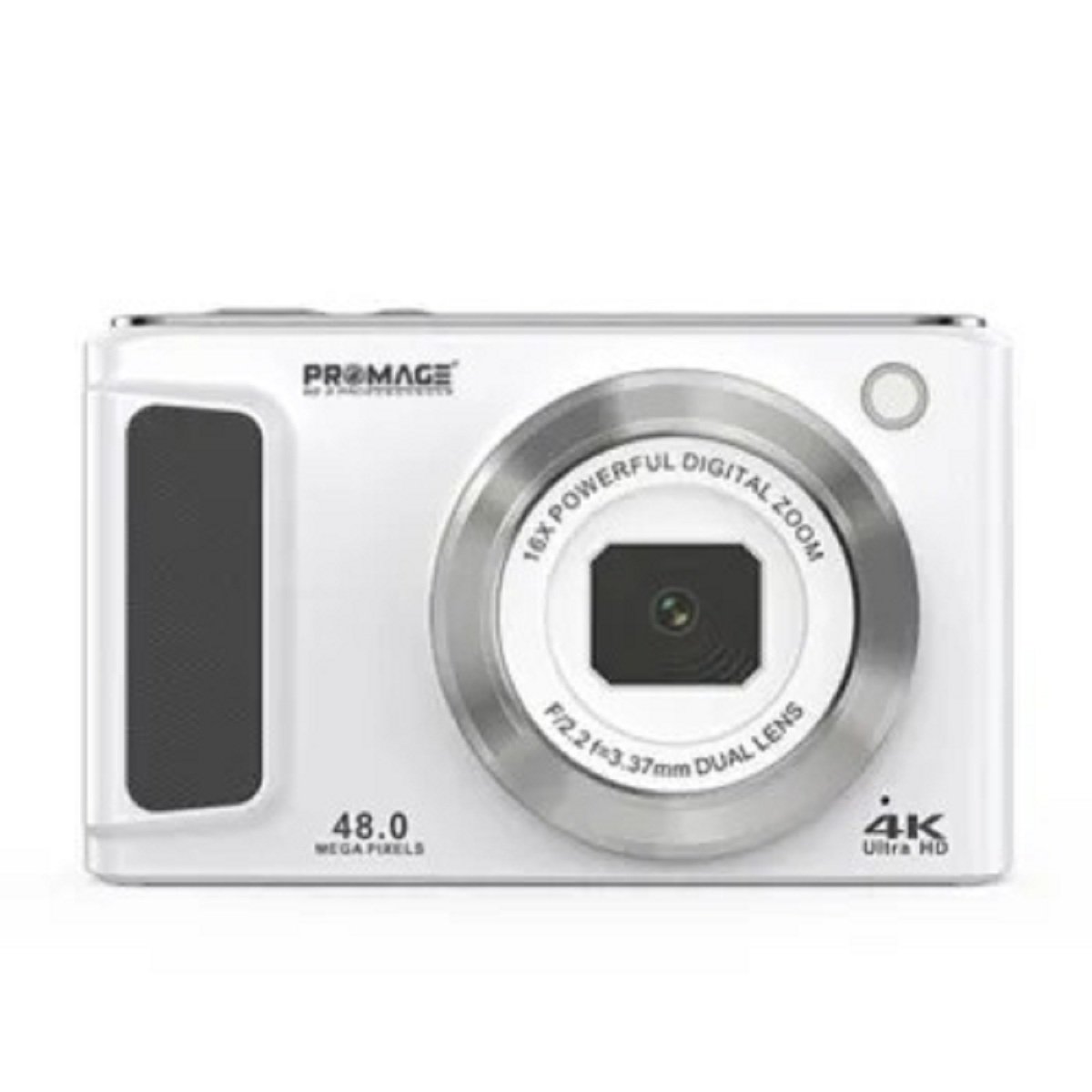Promage Digital Camera PC140 is a compact and stylish 4K Ultra HD camera designed for everyday use. It features 48MP photo resolution, a 2.8-inch IPS display, and 16x digital zoom for capturing clear shots. With support for up to 256GB storage via TF card and multiple white balance presets, it’s ideal for users who want high quality in a small package.