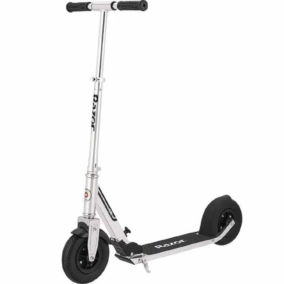 Transform your commute with Razor’s smoothest ride yet. With low vibration anti-rattle handlebars, easy fold technology and rubber grips for comfort on urban terrains, this one is built to perform., , Glide to class or work on the pneumatic tires of the A5 Air, and your chances of arriving with coffee or a smoothie all over your shirt are dramatically reduced. Step up your personal transportation device and arrive calm, clean, and ready to change the world.