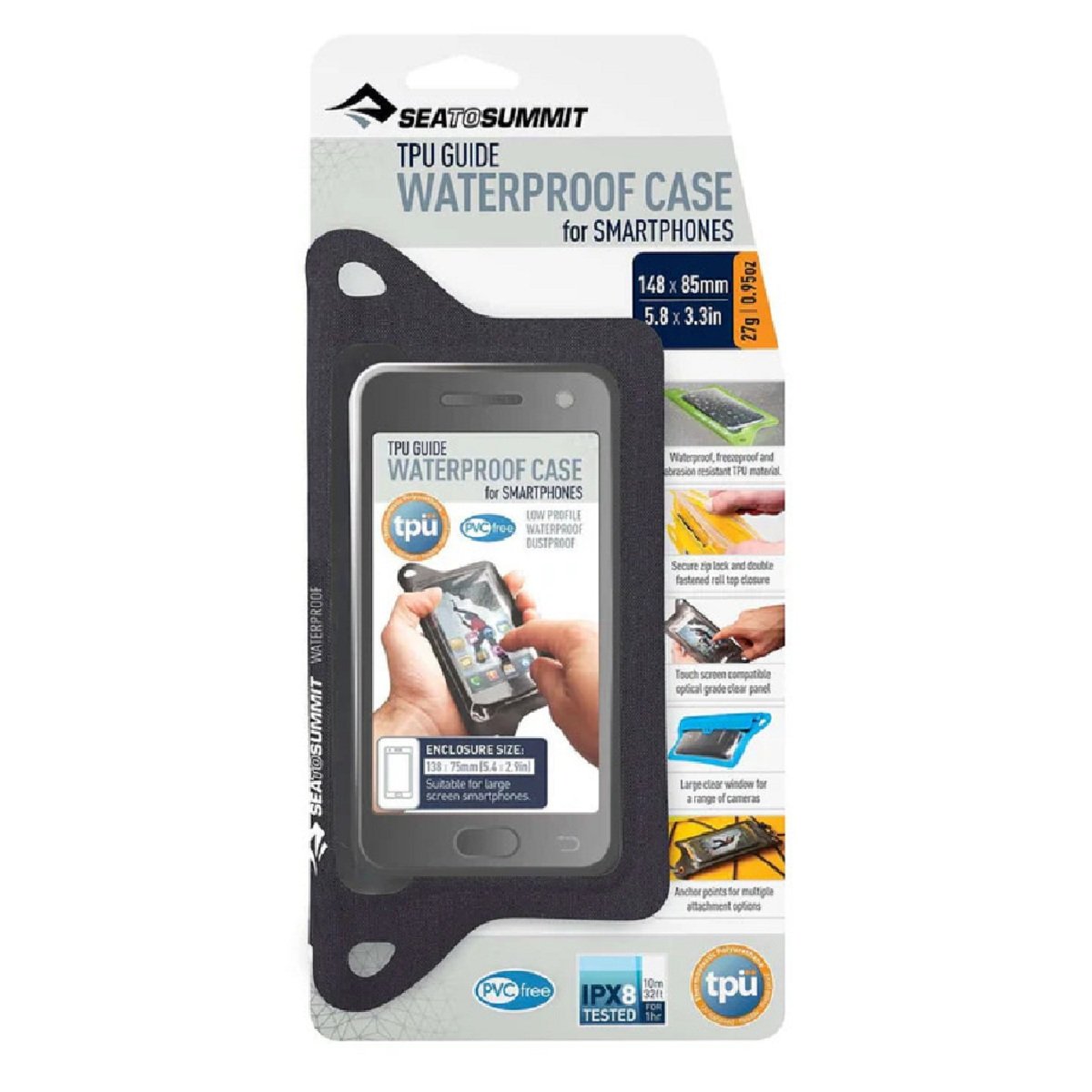 Built for rugged conditions, the Sea to Summit TPU Guide Waterproof Phone Case – Regular keeps your device dry, dust-free, and fully functional no matter where your adventure takes you. The RF-welded seams and triple-roll with hook-and-loop closure ensure reliable waterproofing, while the PVC-free TPU material remains flexible, ultra-tough, and resistant to UV rays and extreme temperatures.