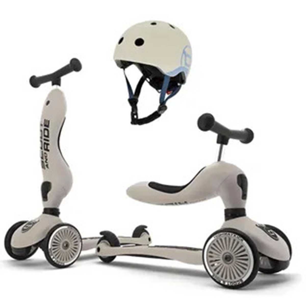 Scoot&Ride 2-in-1 Highwaykick 1 & Helmet XXS-S Ash Bundle