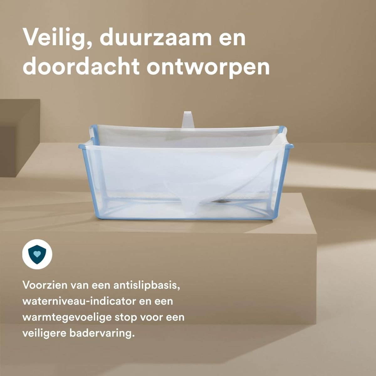 The foldable baby bath. Stokke® Flexi Bath® is a foldable baby bath suitable from birth to four years. The space saving design makes it easy to store and convenient to use at home or when travelling, encouraging more shared bath time moments. The optional Stokke® Flexi Bath® Newborn Support provides additional comfort for newborn babies. Because Stokke are always striving to improve our products, we´re offering a heat sensitive drain plug. The plug works by turning colors, giving parents a visual cue, letting them know that the water temperature is getting warmer and needs to be checked. Please note that the plug is not a thermometer. Always double-check the water temperature with your hand to ensure that it is the right temperature for your baby´s comfort and safety. If you are in any doubt, use a reliable thermometer for accuracy.