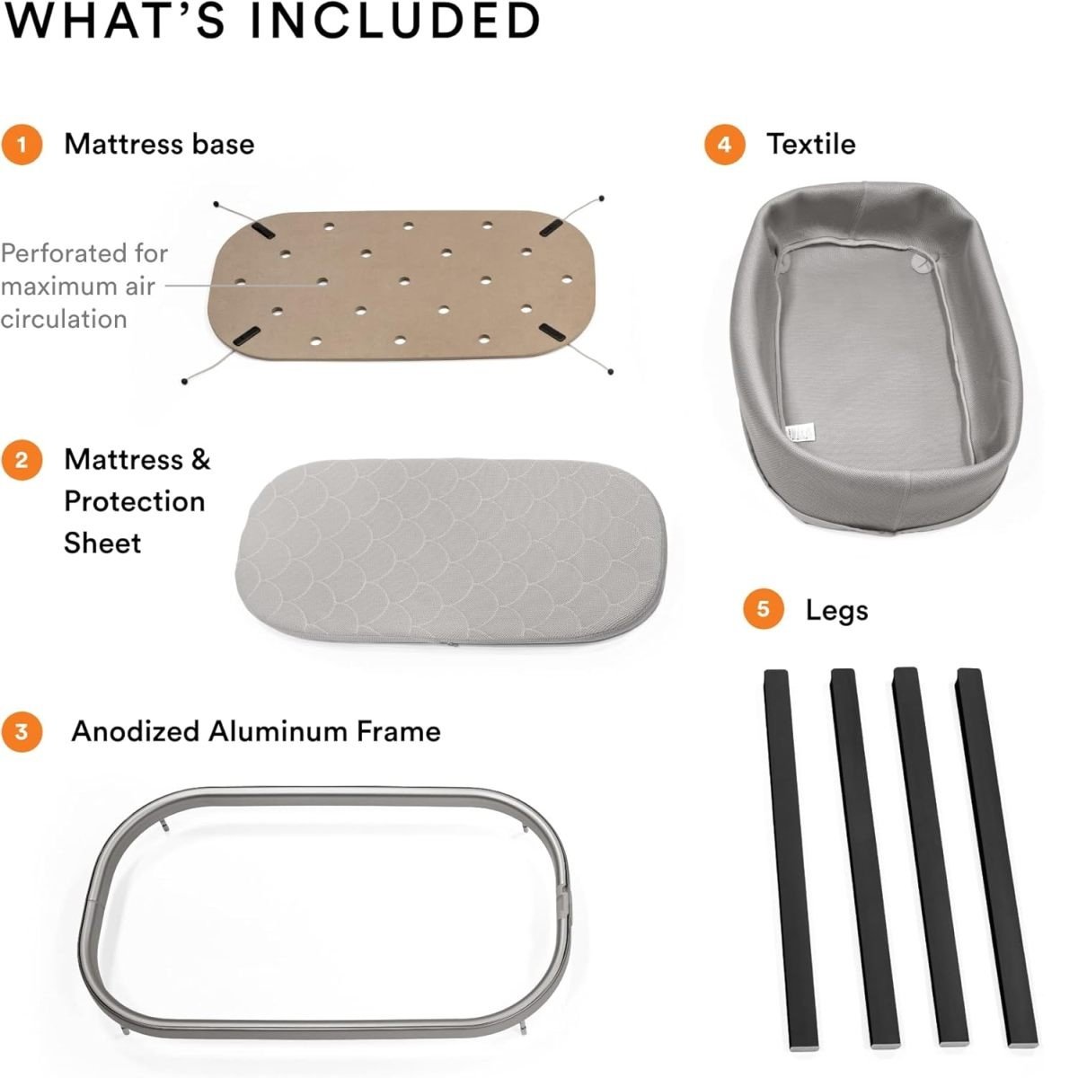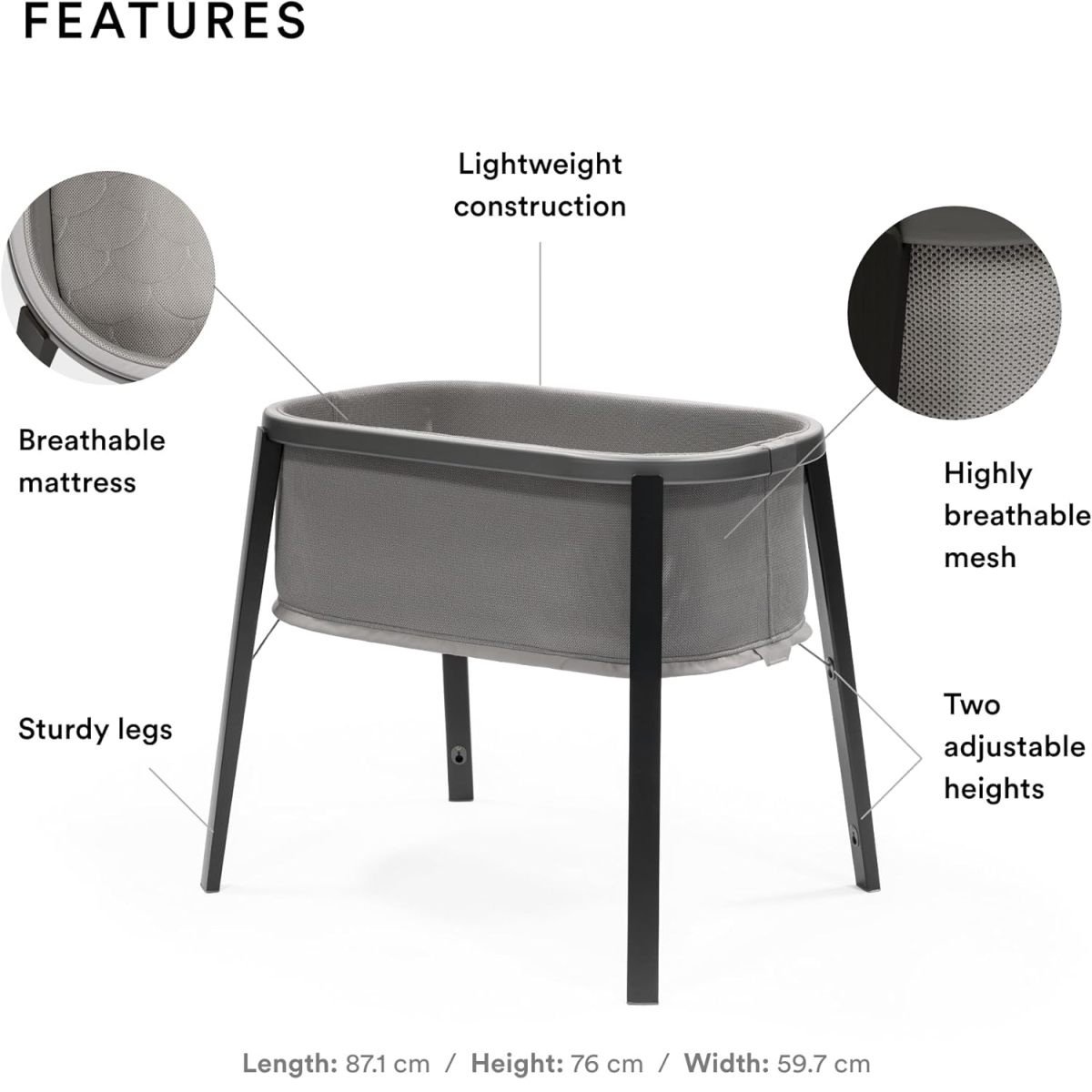 When your baby is so tiny and new, you want to keep them close to you. Looking for the bassinet of your dreams? Rest assured, this is it. Stokke has reinvented the bassinet with the new Stokke® Snoozi™. Airy and light with a soft oval shape, Stokke® Snoozi™ cradles your baby in comfort and can be used from birth to bring your baby near for bonding. ​The firm, comfortable mattress and breathable fabrics make it the perfect place for your newborn to rest, sleep, and nap… in every room of your home. Best of all, it even adjusts as your little one grows. Use the high newborn position for the first 6 months, then simply lower the mattress when your baby can pull themselves up and use it up until 9 months (15kg). ​Designed with premium materials including FSC®-certified wooden legs and a strong aluminum frame, Stokke® Snoozi™ also features main fabrics that are made of breathable 3D mesh materials that are gentle to the touch and machine washable. Available in two stunning neutral colors that suit any style or interior. ​​For on-the-go families, the Stokke® Snoozi™ is also lightweight and assembles tool-free in only a few minutes, so it goes the extra mile and travels with you! Just use the optional travel & storage bag to pack it up for outings or holiday adventures.