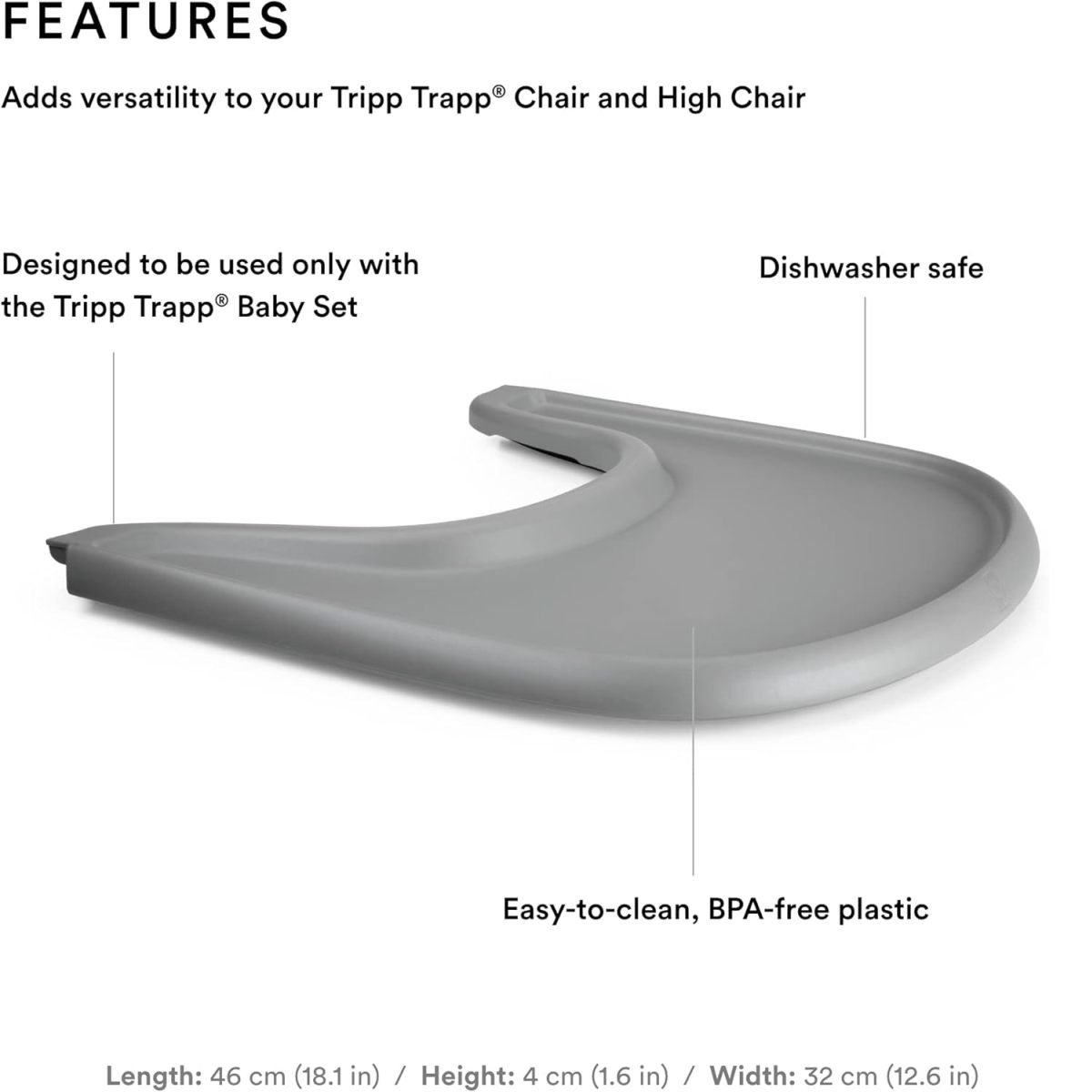 The Tripp Trapp® chair is designed to fit right into your table, bringing your baby into the heart of your family. However, for certain occasions a tray that fits on the chair with Tripp Trapp® Baby Set can be a valuable accessory.