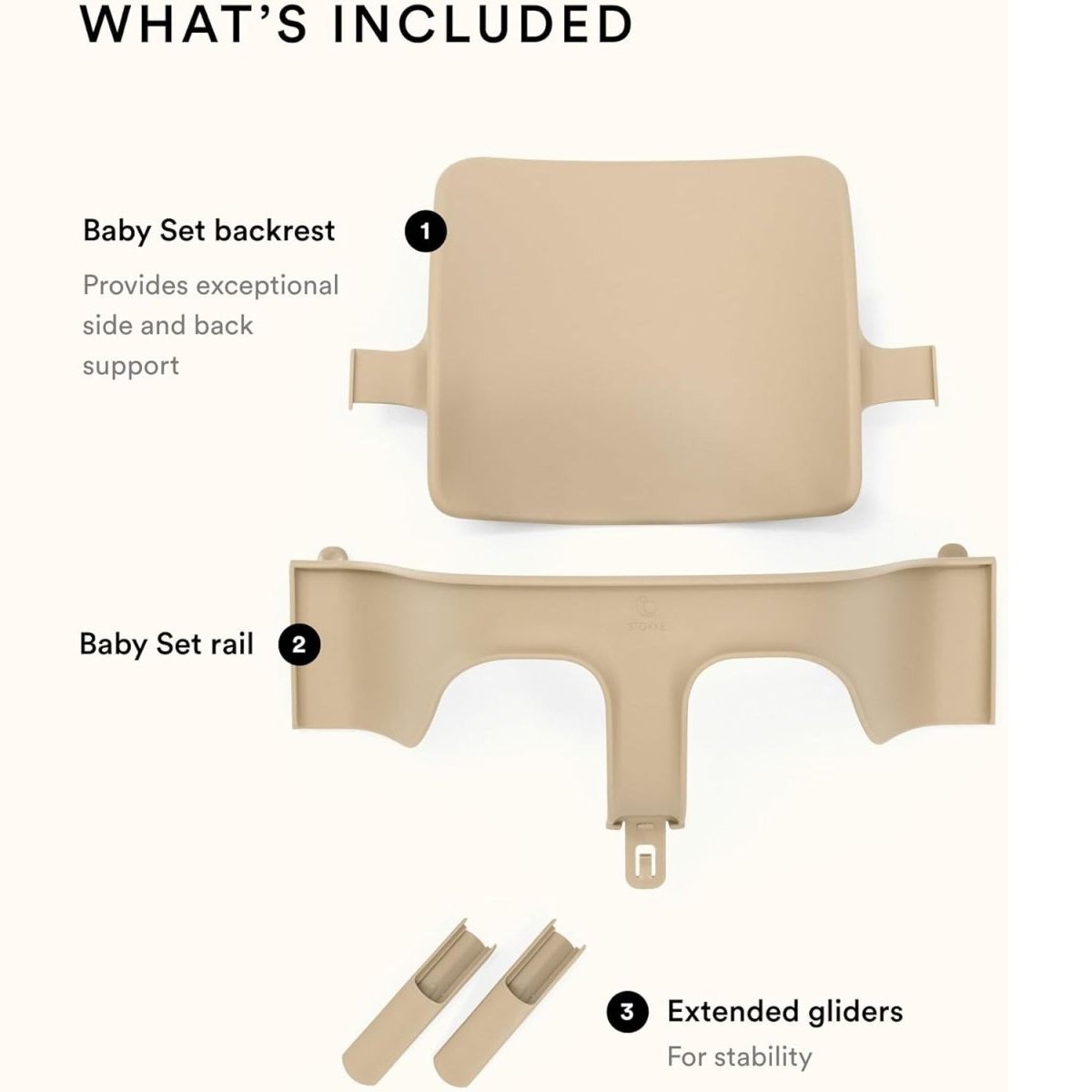 Even your youngest child can join you at the family table using the Tripp Trapp® Baby Set. It provides your child freedom of movement and helps teach them the important skill of sitting. When your child can confidently climb in and out of their baby feeding chair on their own, you can remove the Baby Set. This gives them greater freedom of movement and more independence. Fits European version Tripp Trapp® chairs produced after May 2003.​