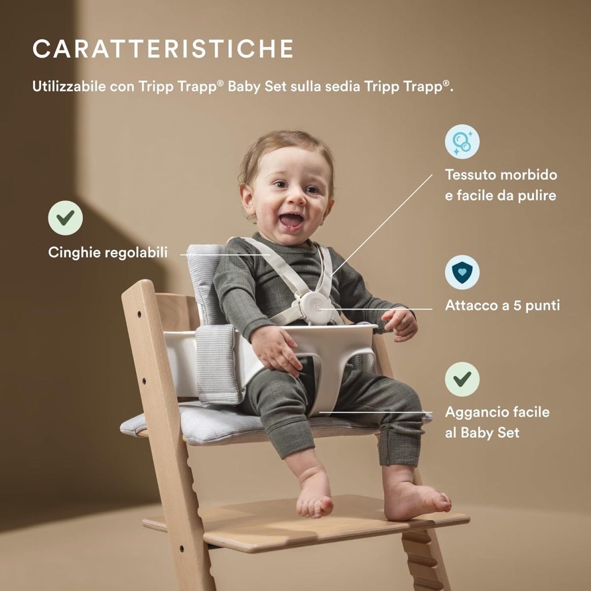 The Stokke® Harness² is a 5-point harness designed for high chair baby feeding. It is compatible with baby chair for sitting and baby chair for eating, ensuring a secure and comfortable fit. The harness uses high-quality materials, making it ideal for a baby food chair or toddler chair. Easy to buckle up and even easier to unbuckle with a quick-release button, the harness is both practical and safe. Buckle up in two clicks, and with the quick-release button, it takes less than a second to release. The straps are made from 100% polypropylene and are easy to wash and keep clean. Adjustment: Waist: 46-71 cm; Shoulder strap: 29-51 cm. The Stokke® Harness² is only compatible with the Tripp Trapp® Baby Set² released in April 2024, but it is not compatible with earlier versions. Perfect for use with the Stokke® high chair or Stokke® Steps high chair for safe feeding.