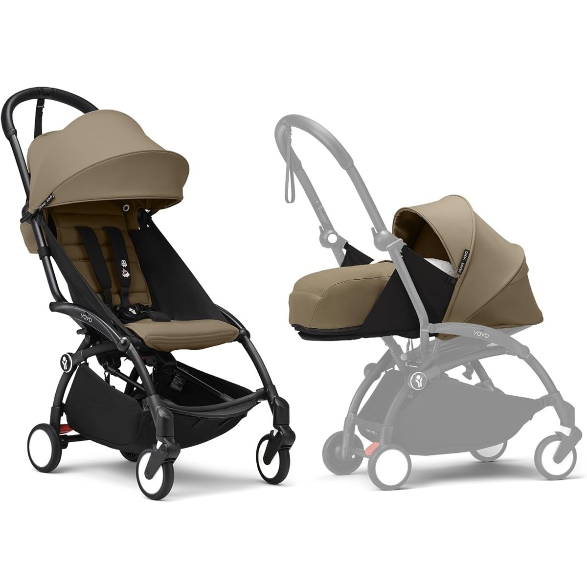 Stokke YOYO Black Frame with YOYO 6+ Color Pack (Toffee) and Newborn Pack (Toffee)