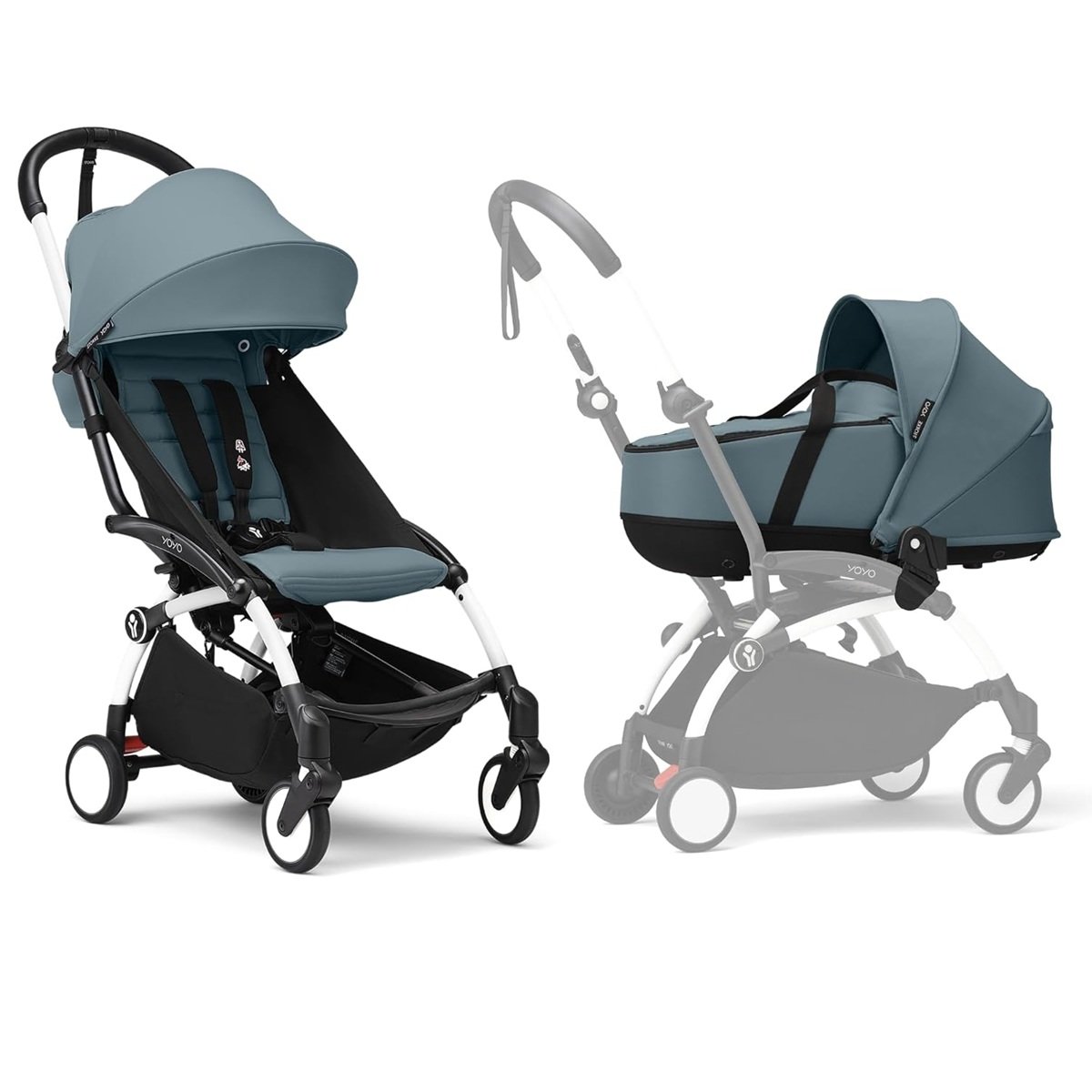 Stokke YOYO3 Frame White + Newborn & 6+ Pack Bundle Aqua