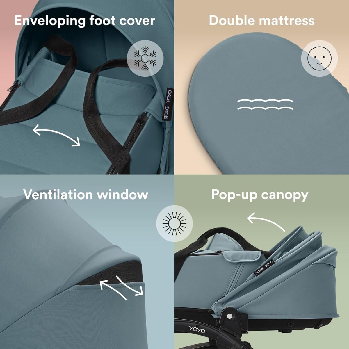 The Newborn Shell allows your baby to lay completely flat; Thanks to its ultra-lightweight design, you can easily carry it by hand, set it on the floor, or clip it onto the YOYO frame to create a cosy newborn stroller