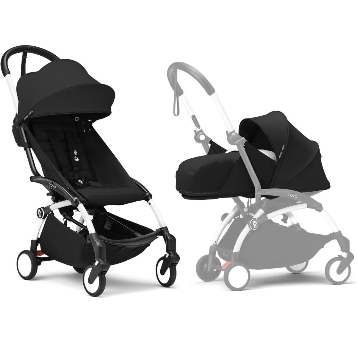 Stokke YOYO White Frame with YOYO 6+ Color Pack (Black) and Newborn Pack (Black)