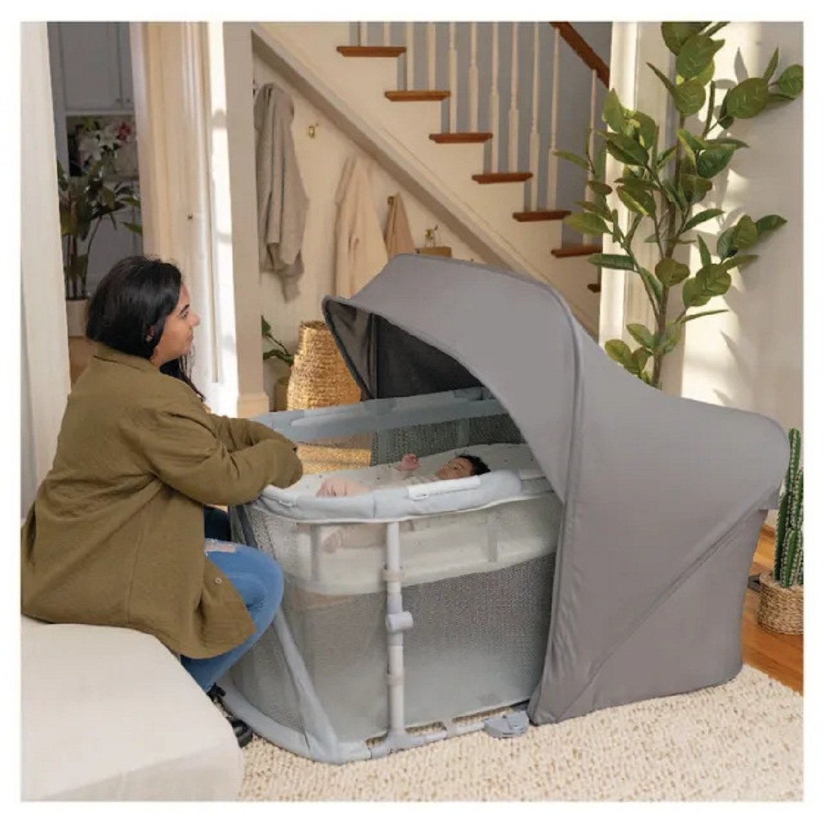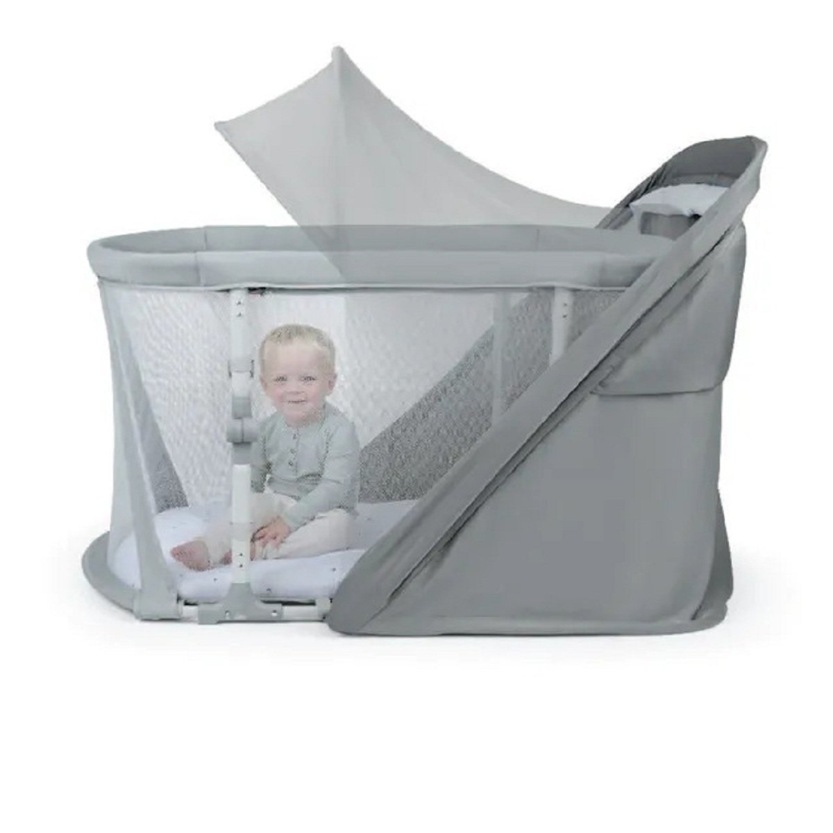No matter where they are, your baby needs the right environment for their best sleep. The 3-in-1 Dream Retreat Healthy Sleep System gives baby an oversized playard space parents can move from room to room or even take on the go. This is the only playard with a safety-certified shade designed that blocks light and reduces stimuli to create a consistent sleep environment for your baby. One of the largest branded playard spaces available, this playard features a versatile, oversized shade that can be used in both playard and bassinet modes. Baby can enjoy the benefits of a shaded area even when they’re not sleeping. Features EZ 3-Step Fold to quickly fold down in 3 simple steps. Made of lightweight materials and includes a convenient transport bag. Attached anchor bags designed for outdoor use. Breathable mesh throughout provides airflow for baby as they sleep or play. This lightweight, 3-in-1 system is an easy way to keep baby happy, shaded, and comfortable no matter where you go. Plus, once baby outgrows the playard, you can continue to use the spacious shade at the beach or park to protect them from the sun’s rays. Patent-pending Dream Retreat shade offers UPF 50+ protection. Indoor or outdoor use.