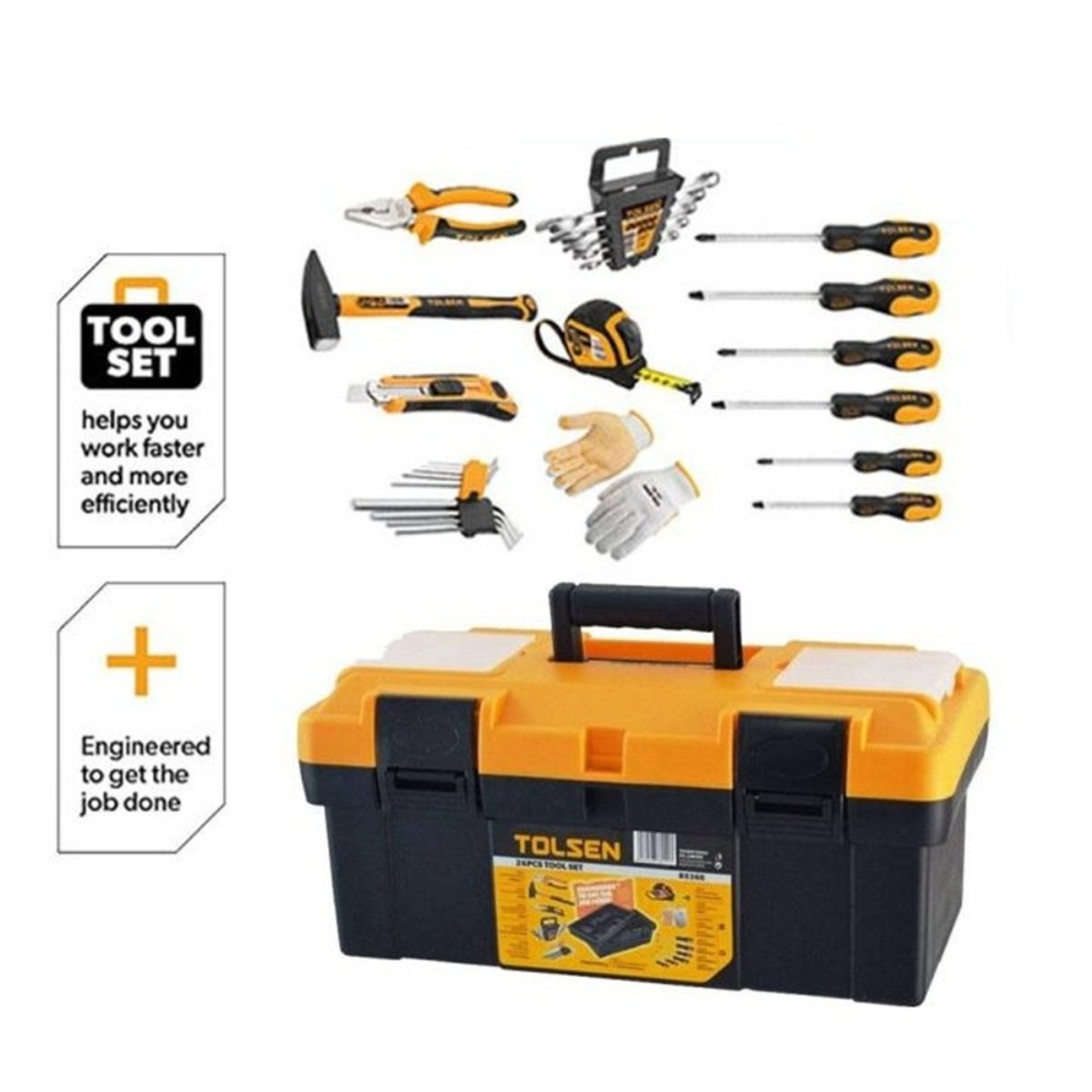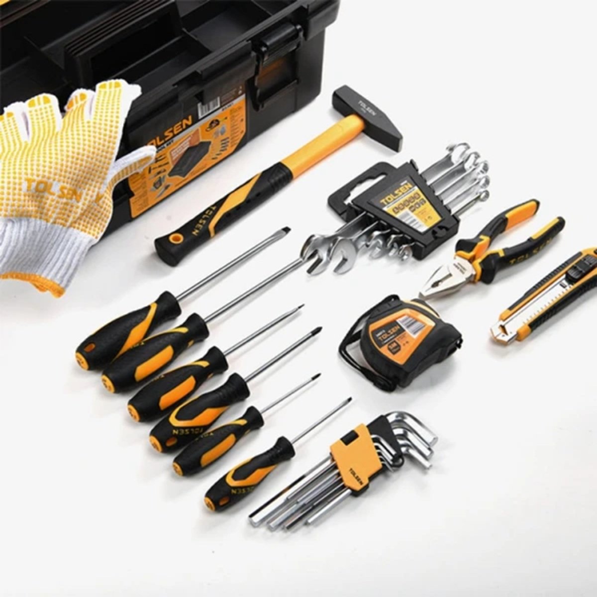 Tolsen 26-Piece Hand Tool Set with 17-Inch Toolbox – Essential Home Repair Kit with Hammer Pliers Spanners Screwdrivers Hex Keys for Household DIY MaintenanceFeatures