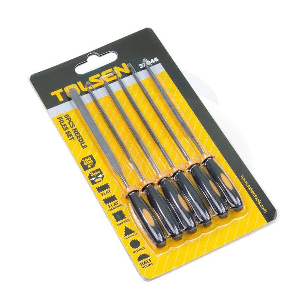 Tolsen – 6Pcs Needle Files Set,32046,3Mm*100MTolsen,6Pcs Needle Files Set,32046,3Mm*100M    Set of 6 alloy steel needle files. Flat, round and semi-round rows are provided. Fine engraving on the entire metal surface of the files. Metal wire length: 100 mm. Rubber grip length: 50mm Robust tools from Tolsen – manufacturer of professional quality tools.
