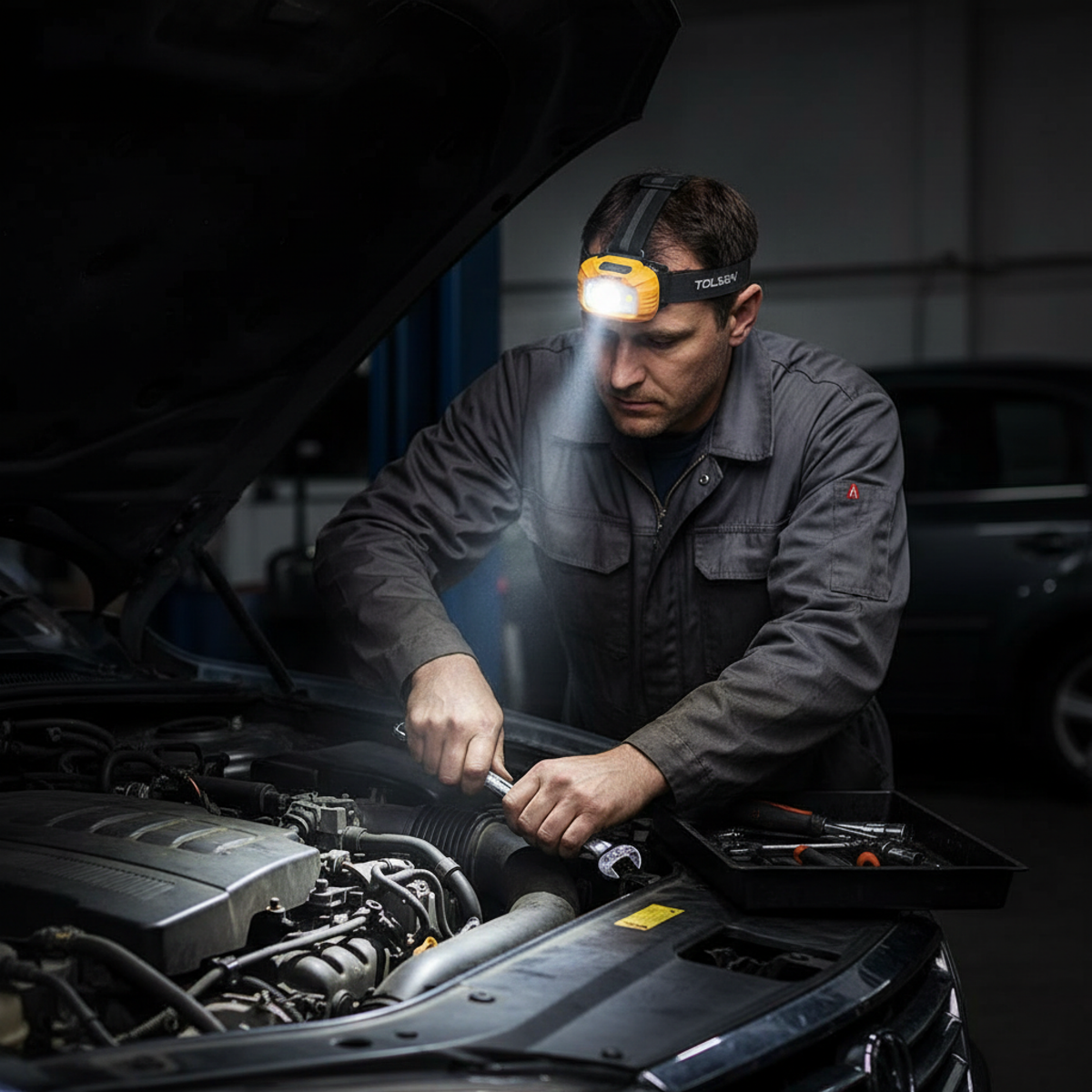 Tolsen Industrial LED Headlamp, 60013, Adjustable Headband, Lightweight Design, Multiple Lighting Modes, Suitable for Workshop Outdoor Repair and General Use, Yellow and BlackFeatures