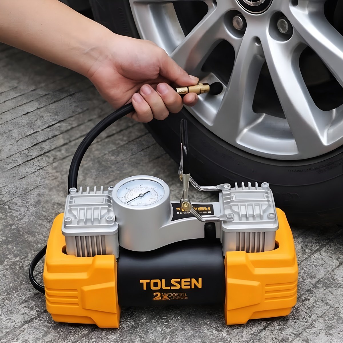 TOLSEN Power Inflator, 65516, Compact Electric Design, Portable Structure, Easy Operation Controls, Durable Construction, Suitable for Tyre Inflation Bicycle Air Filling and General UseFeatures