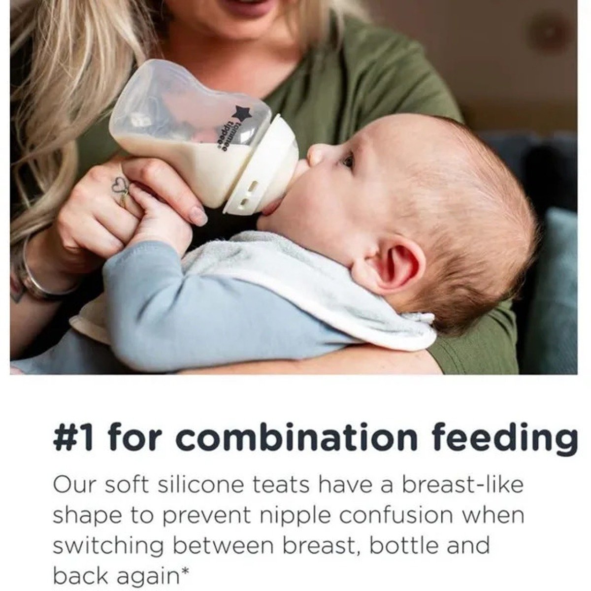 Switching between breast and bottle is second nature with closer to nature teats. Designed in conjunction with breastfeeding experts, the revolutionary new Tommee Tippee Closer to Nature teat mimics the natural flex, movement and softness of a mum’s breast, to make switching between breast and bottle easier than ever before. The unique shape of the Tommee Tippee Closer to Nature teat encourages your baby’s natural feeding action so that switching between breast and bottle becomes second nature.