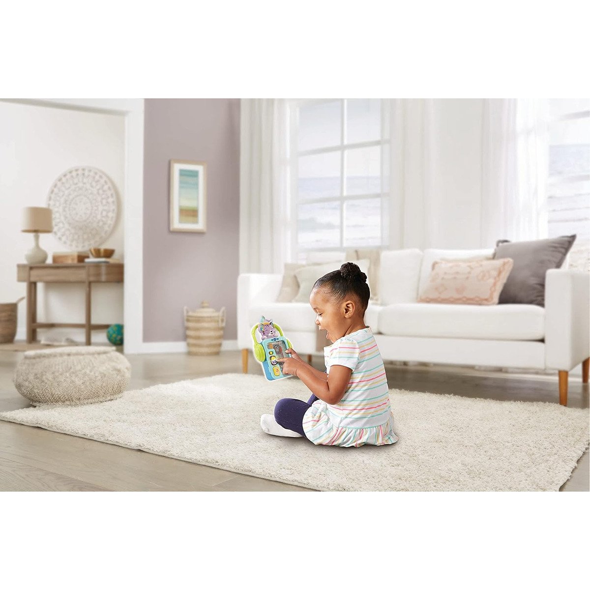 The Pull & Play Kitten by VTech? is a cheerful interactive kitten that loves to play with the big ball of wool! Pull the kitten along or press the letter buttons and the kitten will introduce letters, colours and play music