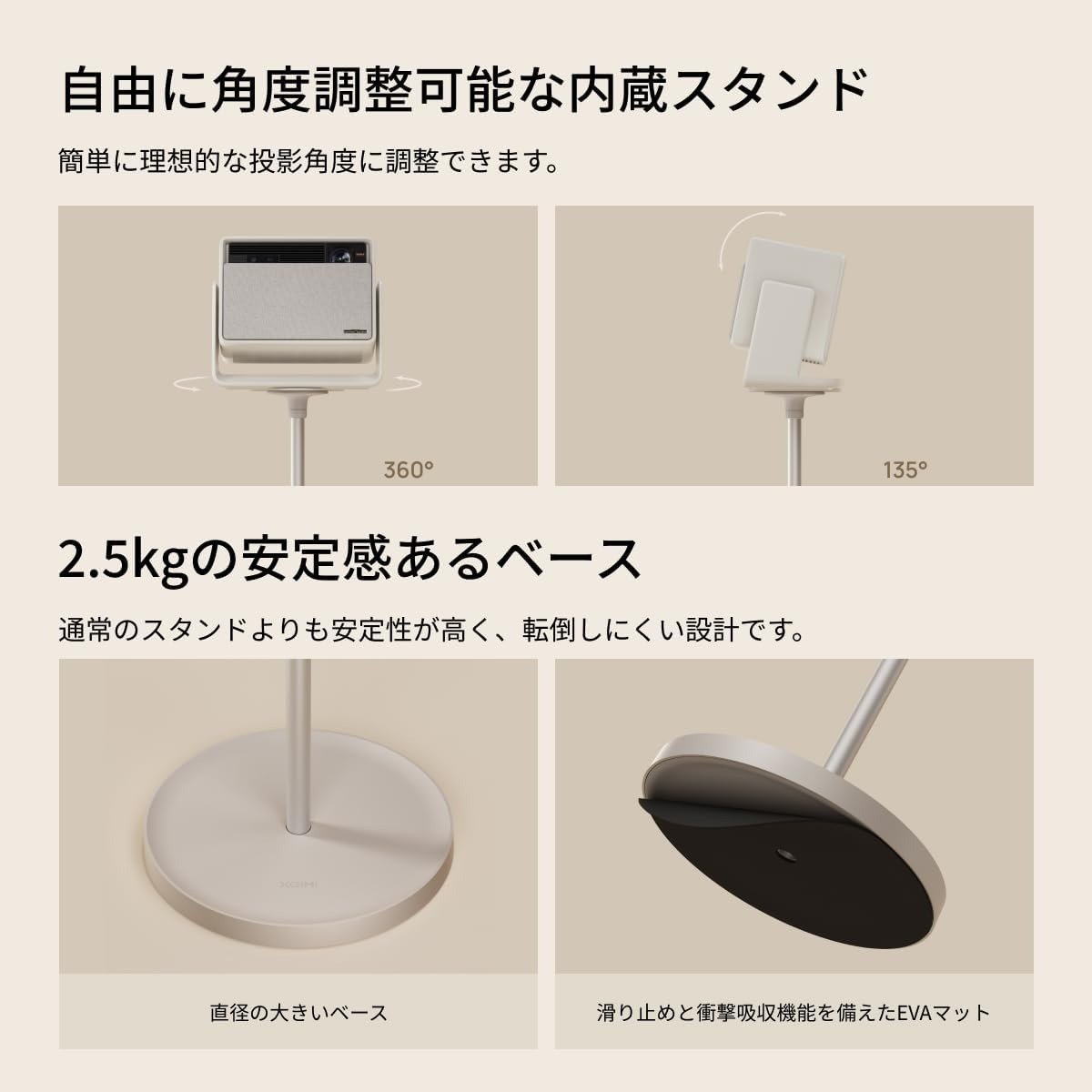 XGIMI Floor Stand for HORIZON S Series| Premium Projector Stand w/ 2.5Kg Solid Base, Fixed Ht. w/ Adjustable Angle, Universal Stand Supports up to 5.5kg Wt. for Home or Professional Use